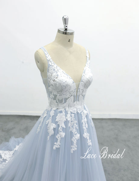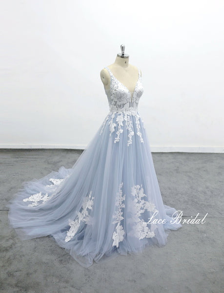 Elevate your bridal vision with this sophisticated gray-blue lace wedding dress, meticulously crafted through our custom-made service. The ethereal lace detailing creates an elegant, timeless aesthetic while the muted gray-blue hue offers a contemporary alternative to traditional white. Each gown is tailored to your precise measurements and preferences, ensuring a flawless fit that celebrates your individual style. Perfect for the discerning bride seeking understated luxury and personalized craftsmanship on her wedding day.