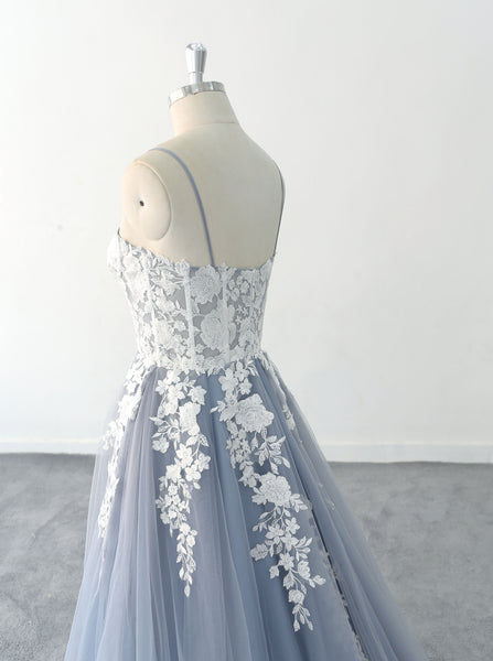 Elevate your bridal vision with this sophisticated gray-blue lace wedding dress, meticulously crafted to your specifications. The delicate lace detailing creates an ethereal aesthetic while the muted gray-blue hue offers a modern alternative to traditional white. Custom-made to ensure a flawless fit, this gown combines timeless elegance with contemporary style. Perfect for the discerning bride seeking a distinctive look that reflects her individual taste and personality.