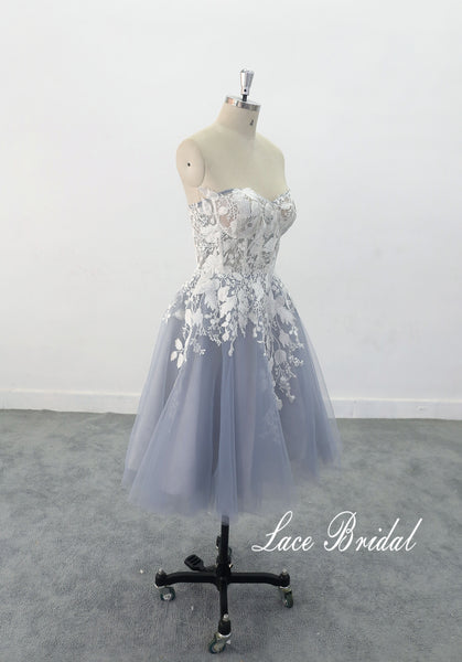 Elevate your wedding day with this sophisticated gray-blue short wedding dress, expertly crafted to your exact specifications. The muted, elegant tone offers a modern alternative to traditional white, flattering a range of complexions while maintaining timeless bridal elegance. Custom-made construction ensures a flawless fit tailored to your unique measurements and preferences. Perfect for intimate ceremonies, receptions, or brides seeking a refined, unconventional aesthetic. This piece combines contemporary style with meticulous craftsmanship for a memorable entrance.