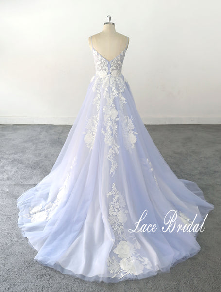 Elevate your bridal vision with our exquisite ice blue lace wedding dress, meticulously crafted to your specifications. This custom-made gown features delicate lace detailing that captures light beautifully, creating an ethereal silhouette perfect for the modern bride seeking something distinctive. Each dress is tailored to your exact measurements and preferences, ensuring a flawless fit and personalized design that reflects your individual style. The cool ice blue hue offers a sophisticated alternative to traditional white, making a striking statement on your wedding day. Our expert artisans work closely with you throughout the creation process to bring your dream dress to life.