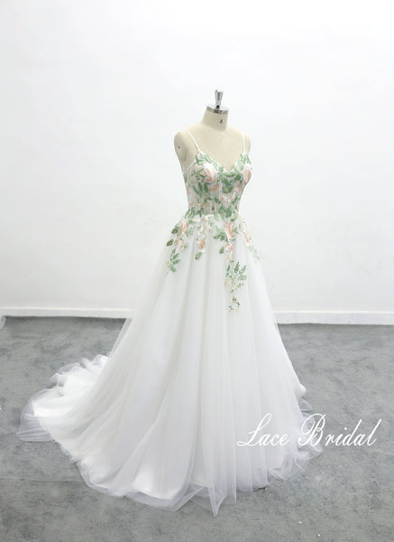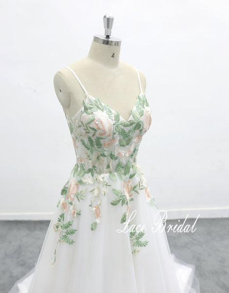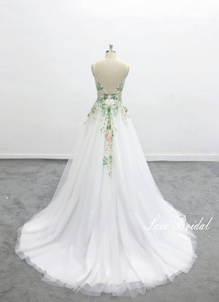 Elevate your bridal vision with this exquisite ivory wedding dress, featuring intricate green lace detailing that adds a sophisticated, modern touch to classic elegance. Crafted as a custom-made piece, this gown is tailored to your exact specifications and measurements, ensuring a flawless fit that celebrates your unique style. The harmonious blend of pristine ivory fabric with verdant lace accents creates a striking visual contrast, perfect for the discerning bride seeking something truly distinctive. Each detail is meticulously constructed to deliver both comfort and confidence on your special day.