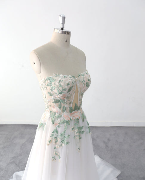 Elevate your bridal vision with our exquisite collection of custom-made wedding dresses. Choose from timeless ivory elegance or make a bold statement with our stunning green lace design. Each gown is meticulously crafted to your specifications, ensuring a perfect fit and personalized style that reflects your unique personality. Our expert artisans work with premium fabrics and intricate detailing to create a dress you'll treasure on your most important day. Whether you prefer classic sophistication or contemporary flair, we deliver exceptional quality and craftsmanship tailored exclusively for you.