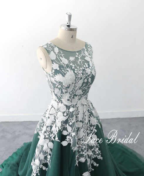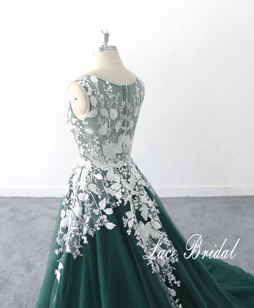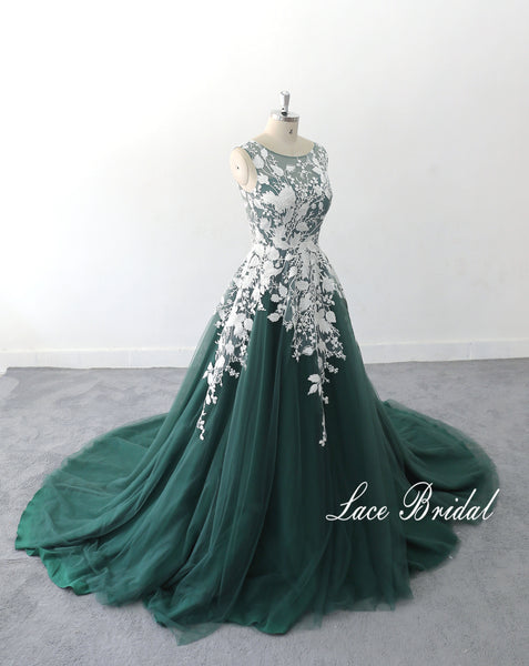 Elevate your bridal vision with our exquisite jade green lace wedding dress, meticulously crafted to your specifications. This custom-made gown features intricate lace detailing that combines timeless elegance with contemporary sophistication. The serene jade green hue offers a distinctive alternative to traditional white, allowing you to express your individual style on your wedding day. Each dress is tailored to your exact measurements and preferences, ensuring a flawless fit and personalized design that reflects your unique aesthetic. Perfect for the modern bride seeking something extraordinary.