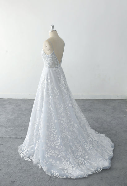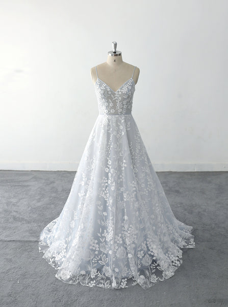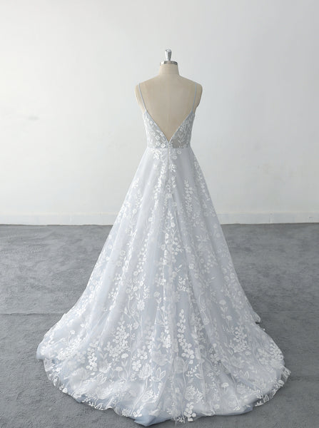 Light blue wedding dress, lace wedding dress, custom-made wedding dress